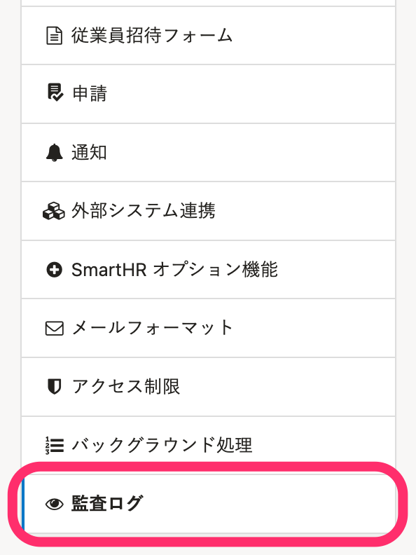 SmartHRでは従業員情報の作成・変更・削除や、マイナンバーの閲覧・編集など、重要な操作を[監査ログ]として保持しています。