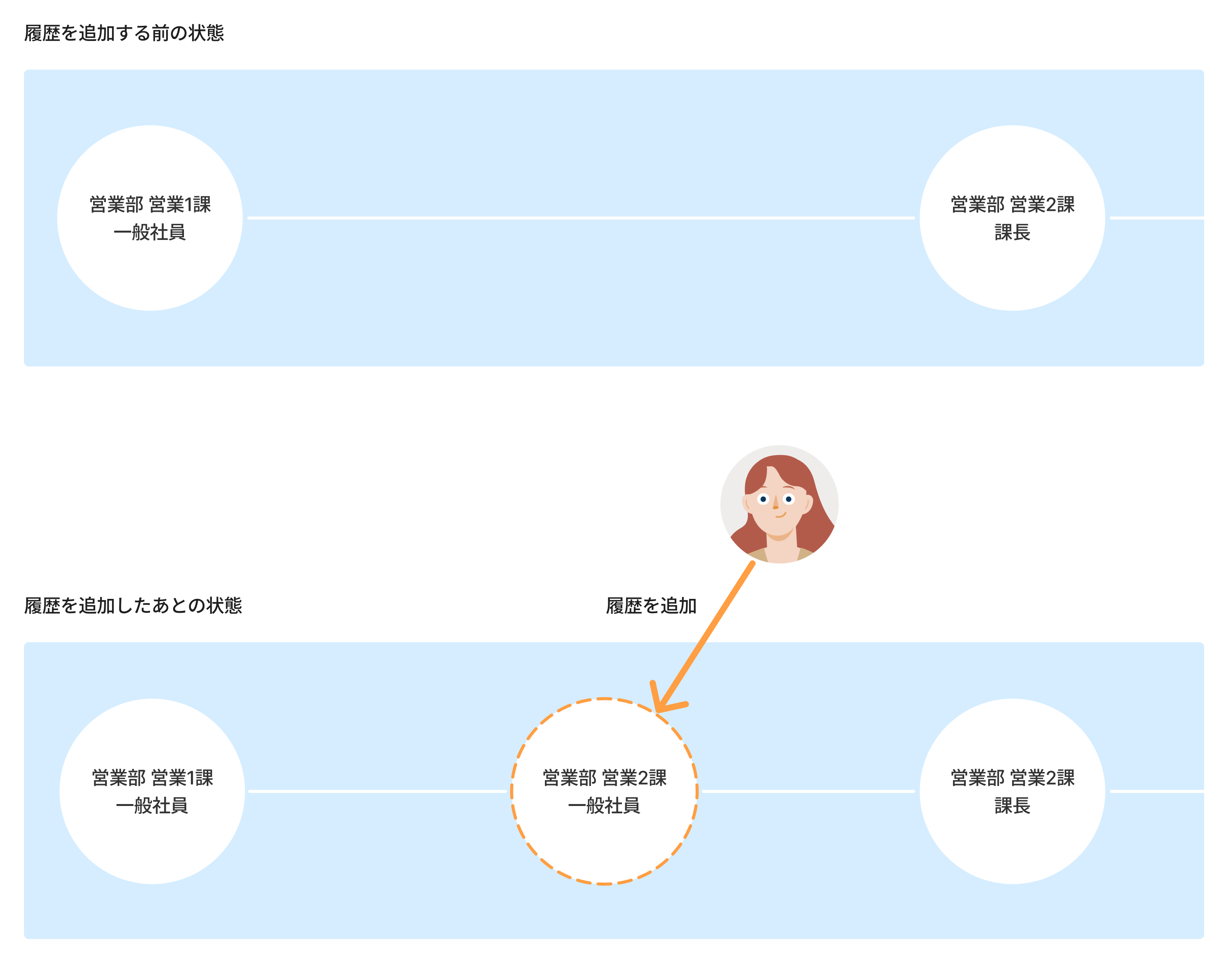 履歴を追加する操作について、従業員1名分ずつ操作する場合は従業員情報の履歴を追加する、複数の従業員の履歴を一括で更新する操作は適用日を指定して従業員情報の履歴を一括で追加・更新するを参照してください。 また、未来の適用日で更新予約したい場合は予約を追加するを参照してください。