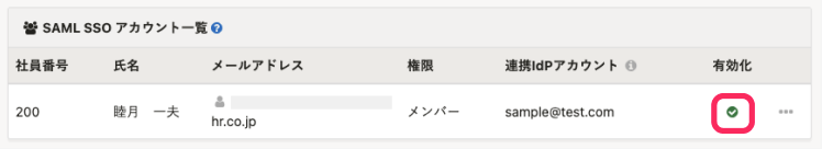 [有効化]が[無効]になっている場合は、SSOができない従業員の[…]>[SAML SSOアカウントを編集する]を押します。