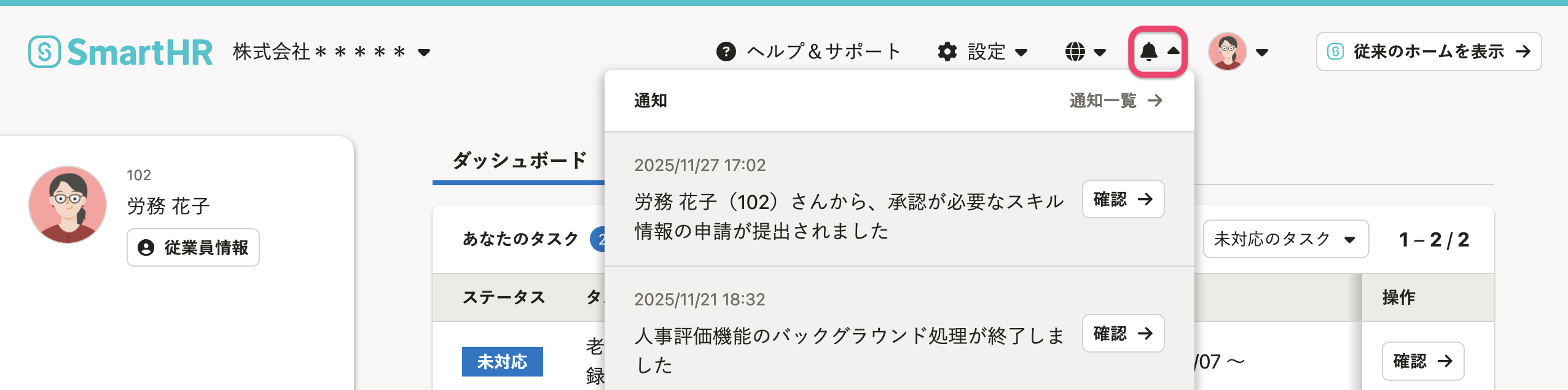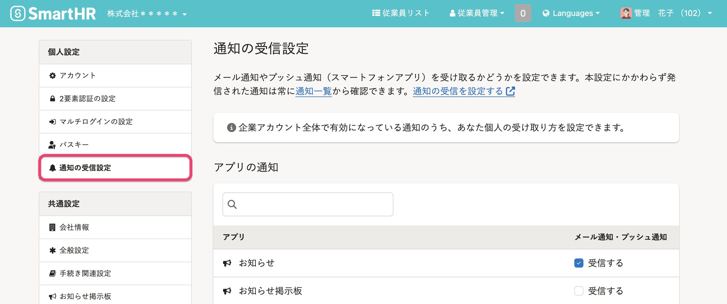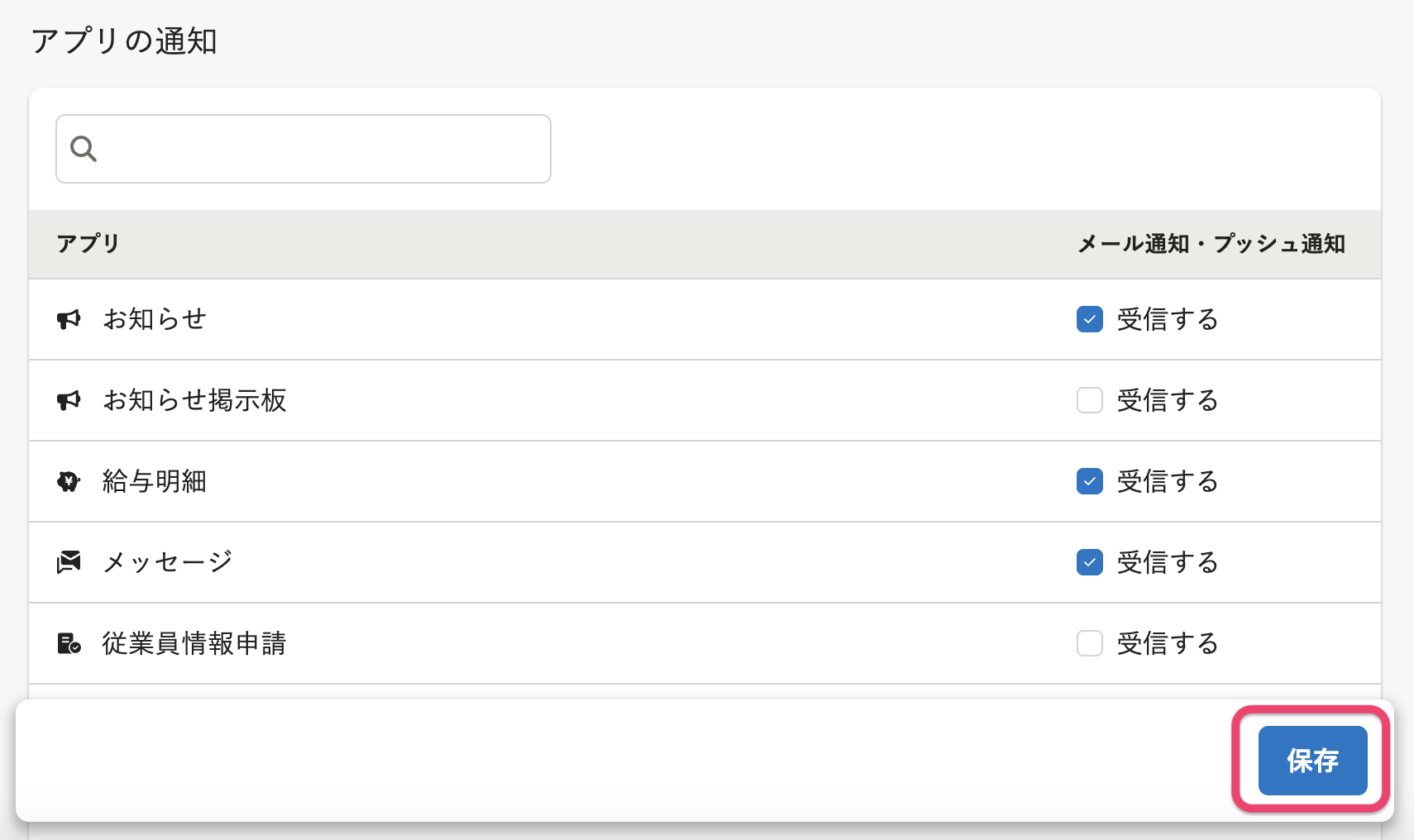 SmartHRのメール通知・スマートフォンアプリのプッシュ通知を受け取るかどうかを、アプリごとに設定できます。