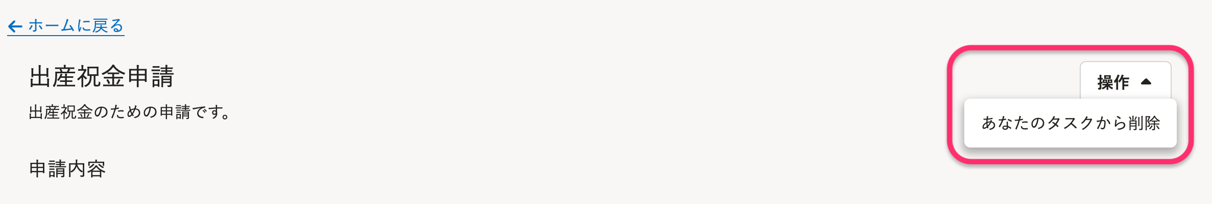 ホーム画面を再読み込みし、[あなたのタスク]からタスクが削除されていることを確認します。