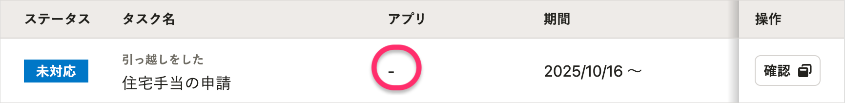 [あなたのタスク]で[アプリ]に[-]が表示されている場合の手順を説明します。