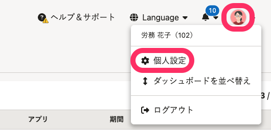 画面右上のプロフィール画像を押し、[個人設定]を押します。