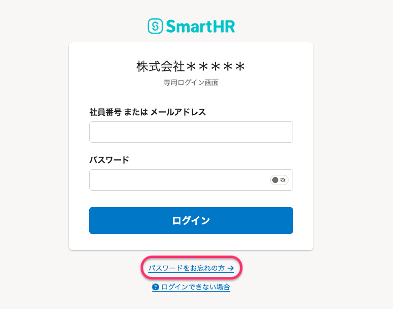 ログイン・通知用メールアドレスが未設定の状態でパスワードを忘れてしまい、SmartHRにログインできなくなった場合、自身ではパスワードをリセットできません。