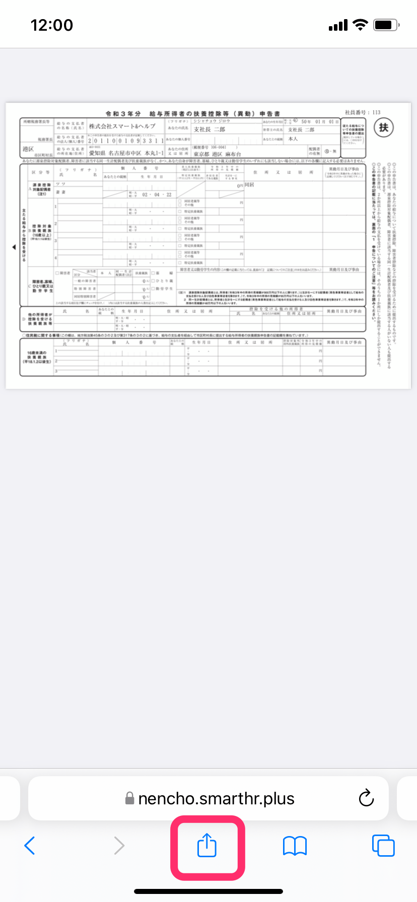 スマートフォンのブラウザ、または「SmartHR」アプリを使って、PDF書類をスマートフォンに保存する手順を説明します。