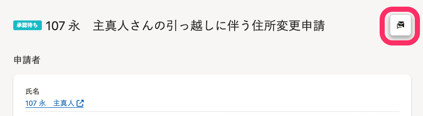 申請タイトルの右横にあるメッセージアイコンを押します。