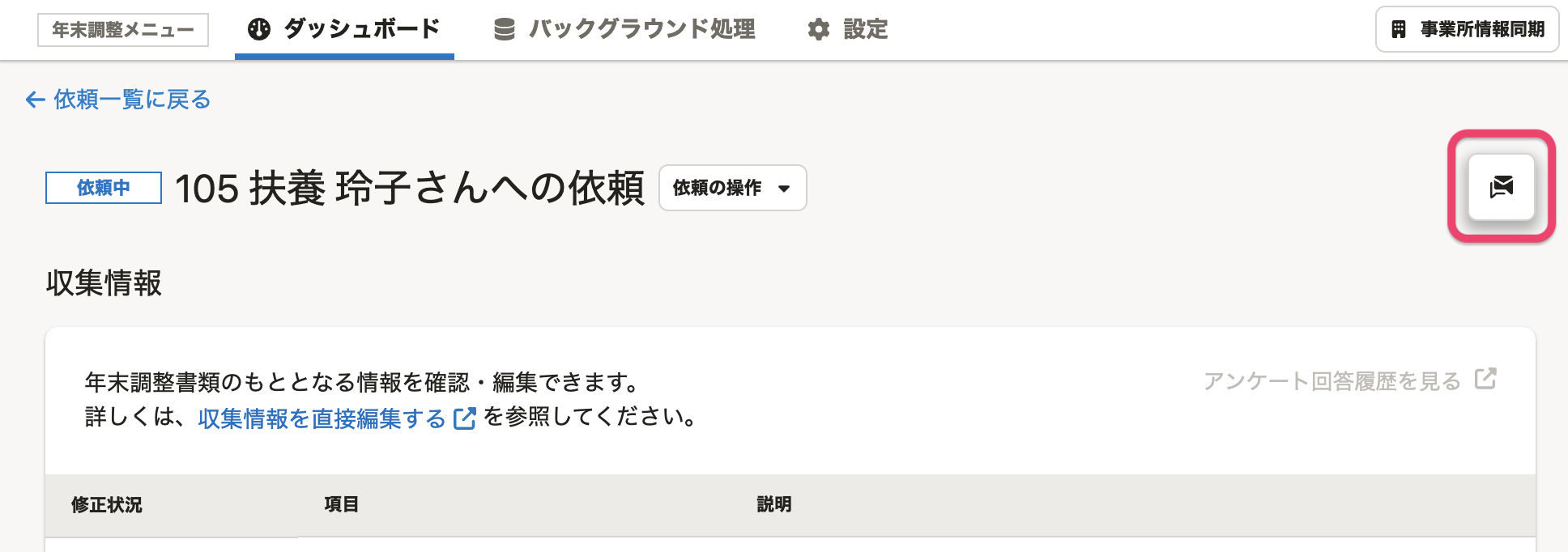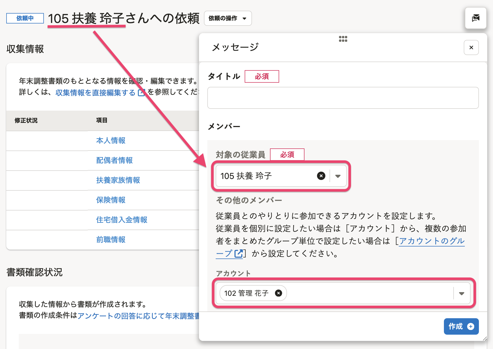すでにあるメッセージルームと年末調整の依頼を連携する方法は、やりとり中のメッセージルームと年末調整の依頼を連携する を参照してください。