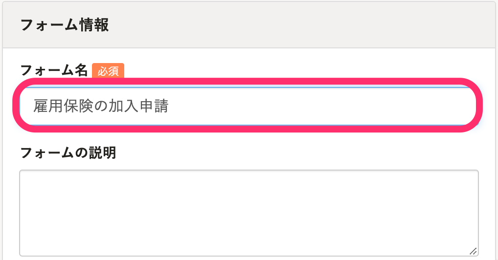 申請フォームの設定画面を開き、下記のように申請フォームを設定します。