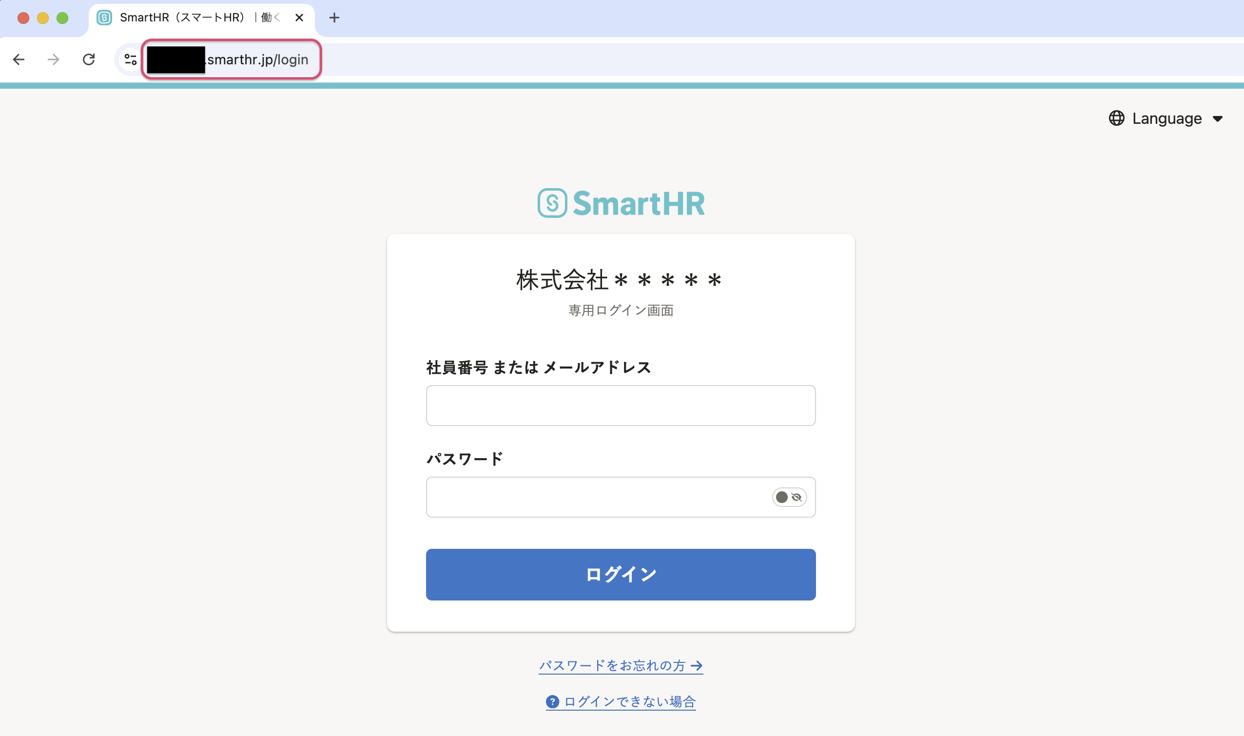 企業専用ログイン画面とは、特定の企業アカウントにログインするための画面のことで、URLは https://{サブドメイン}.smarthr.jp/login となります。