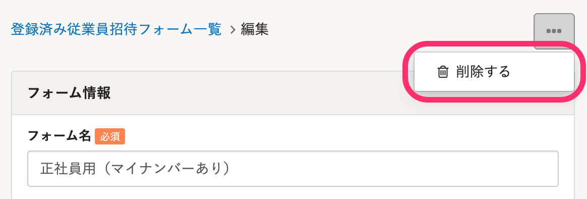 従業員招待フォームを削除する