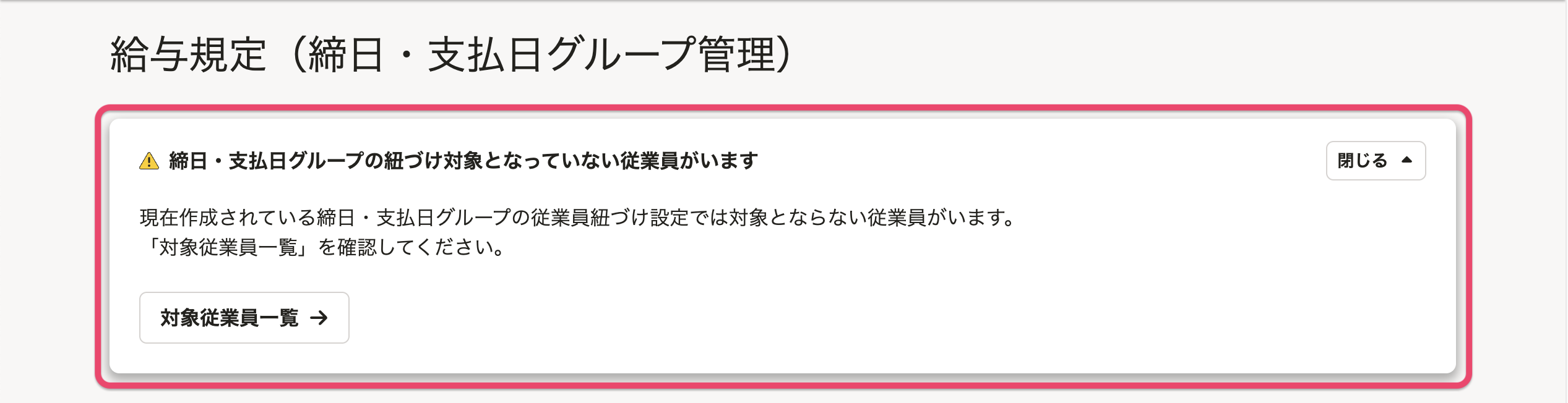 従業員の人数に関わらず、必ず1つは締日・支払日グループを作成する必要があります。グループごとに給与や賞与を計算します。