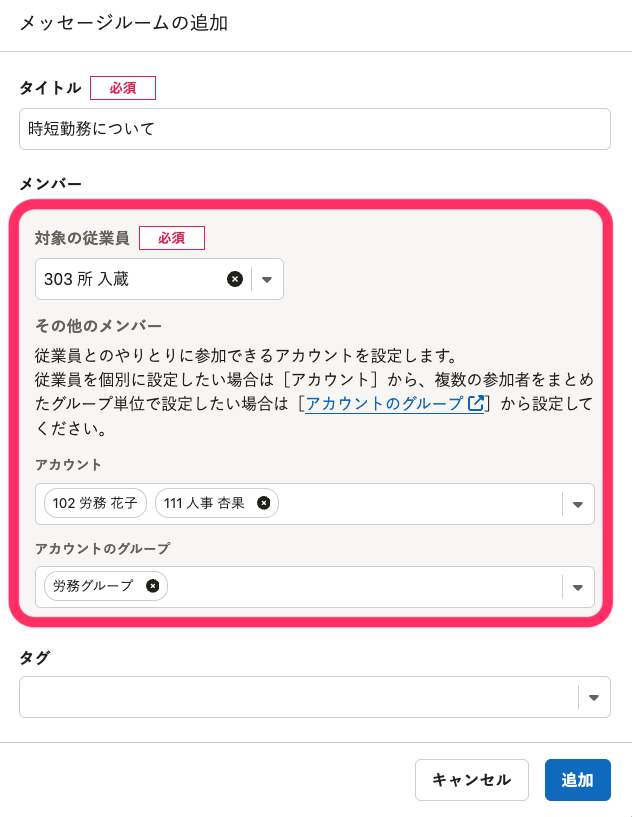メッセージルームのメンバーとは、メッセージルームで指定されている下記メンバーを指します。