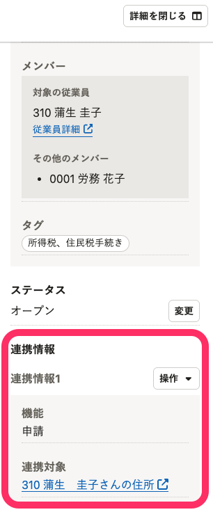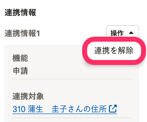 「連携対象」に表示されているリンクを押すと、該当の画面に移動します。