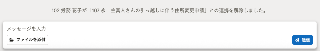 また、連携していた申請の詳細画面からメッセージルームの内容を閲覧できなくなります。
