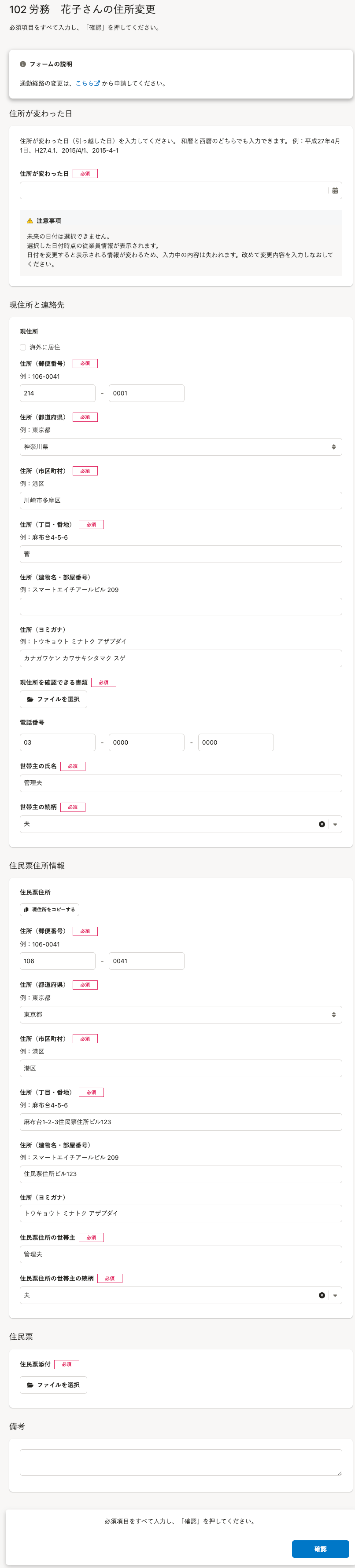 「住所変更」の情報を提出してもらうフォームの設定例を紹介します。