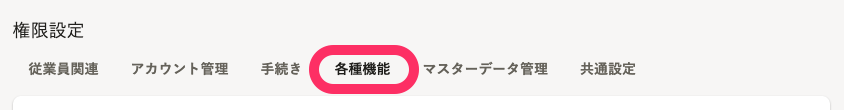 画像を表示する - アカウント権限の追加・編集画面で、[各種機能]タブを押します。