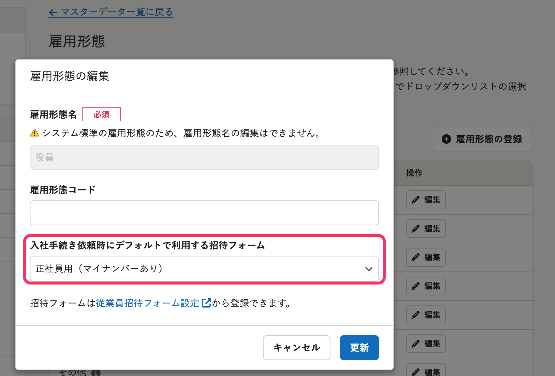 1つの雇用形態に対し、1つの従業員招待フォームを指定できます。
