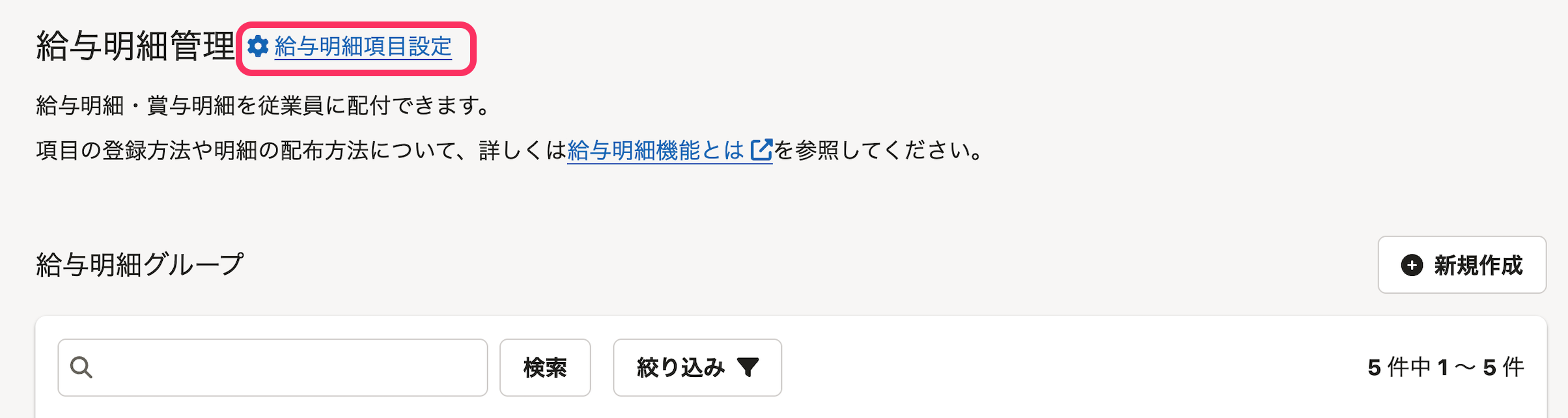 画面タイトルの横にある[給与明細項目設定]を押します。