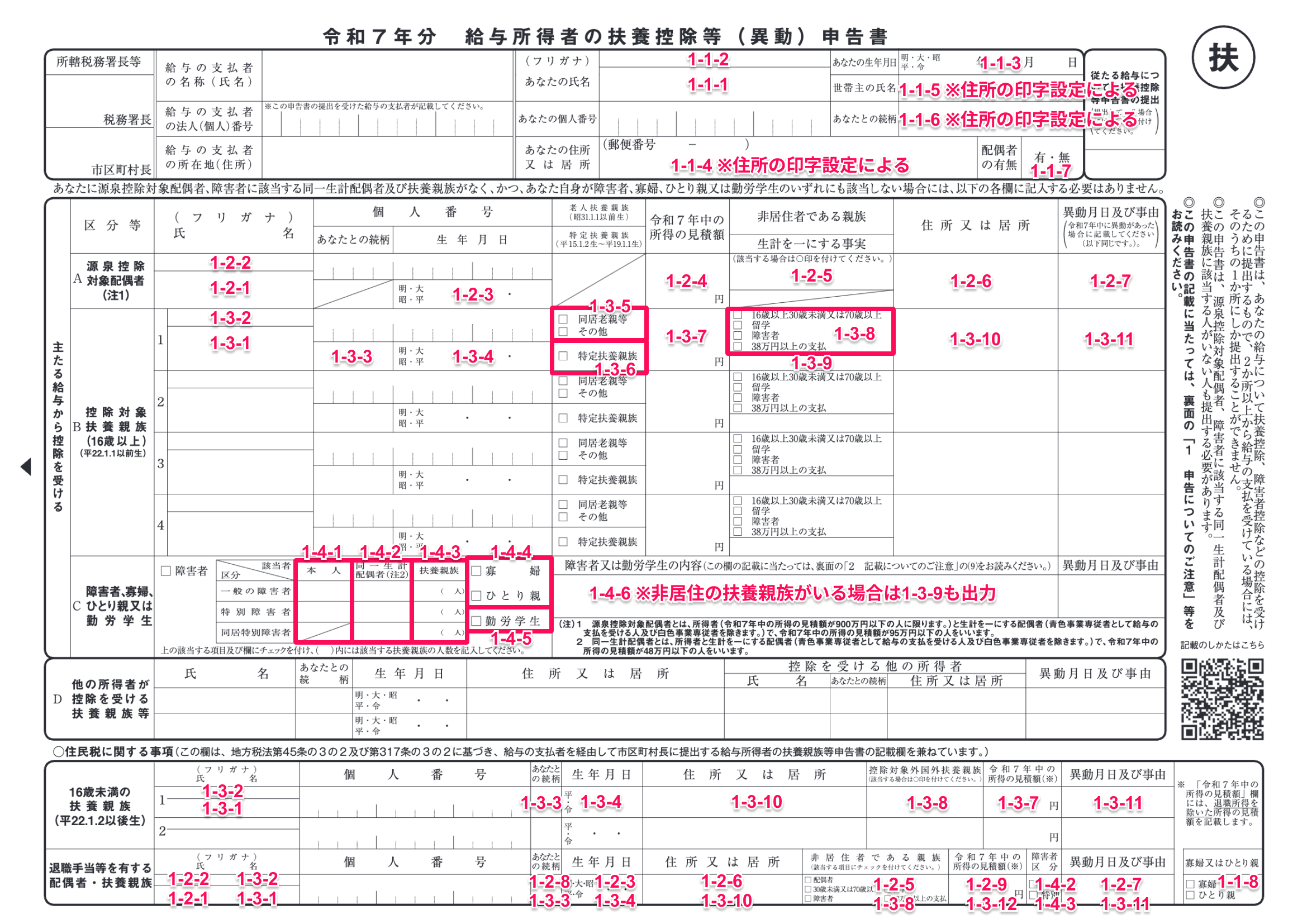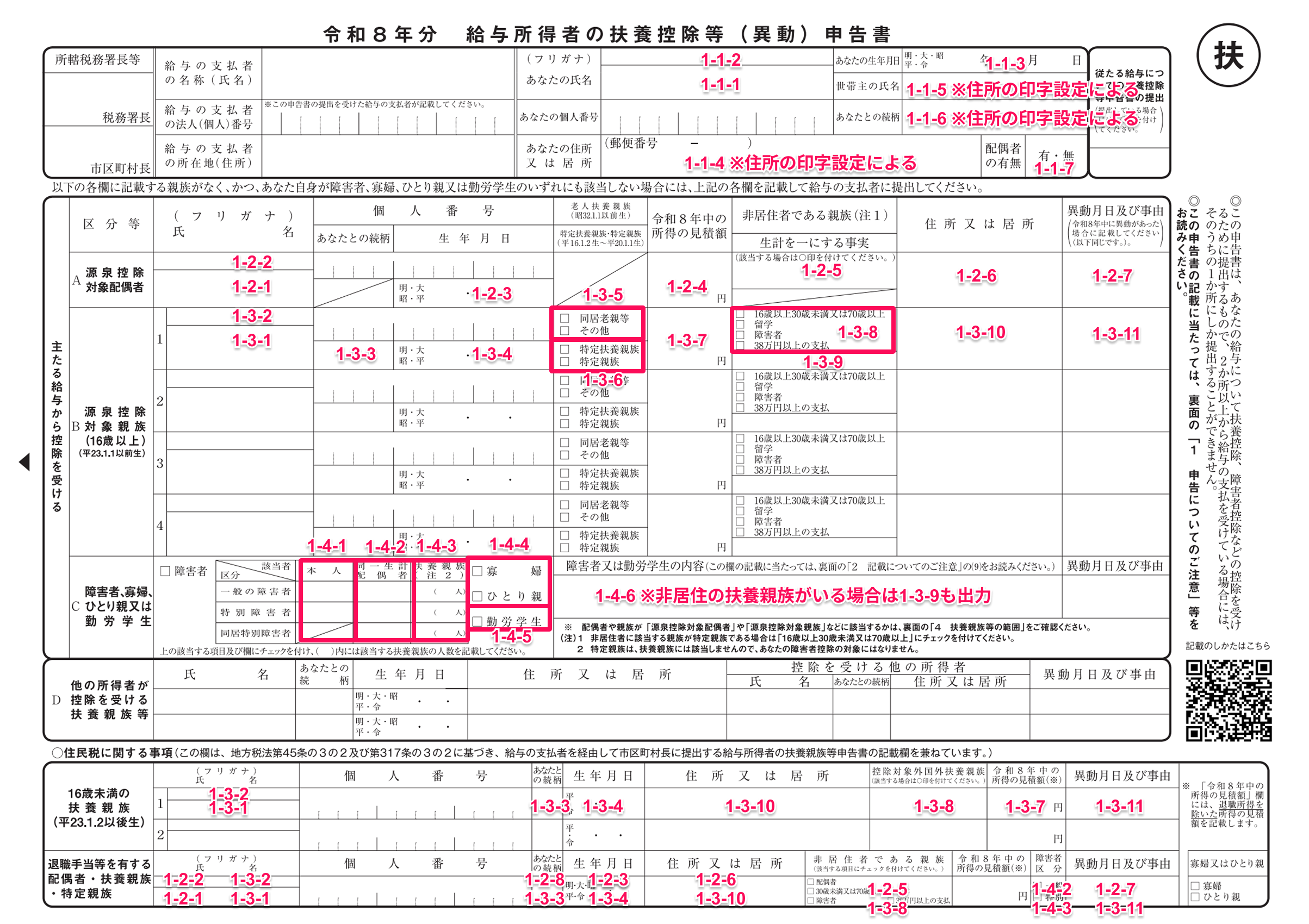 ※「【簡易対応様式】令和8年分扶養控除等(異動)申告書」には対応していません(参考:各種申告書・記載例(扶養控除等申告書など)|国税庁別タブで開く)。