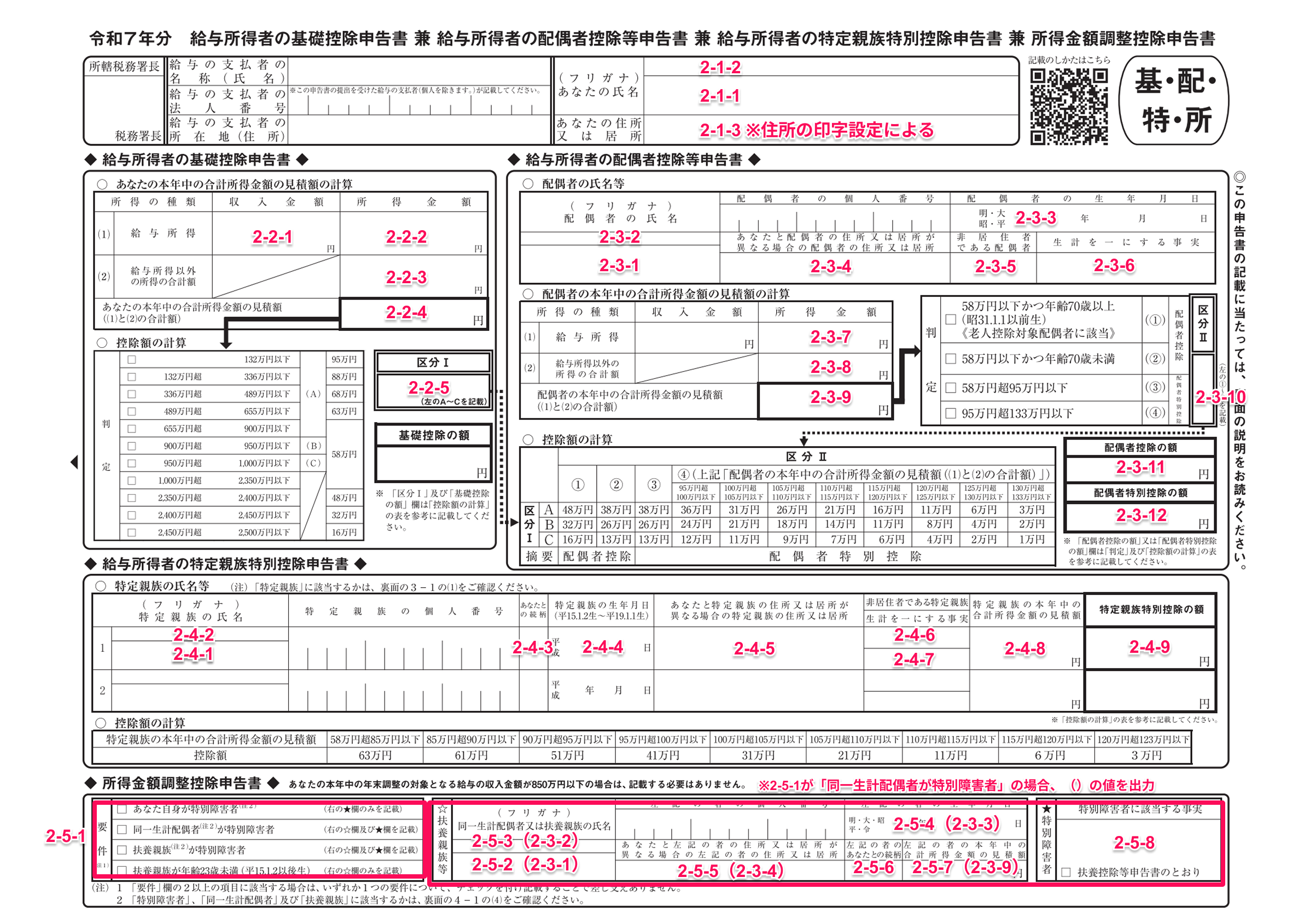 給与所得者の基礎控除申告書 兼 給与所得者の配偶者控除等申告書 兼 特定親族特別控除申告書 兼 所得金額調整控除申告書