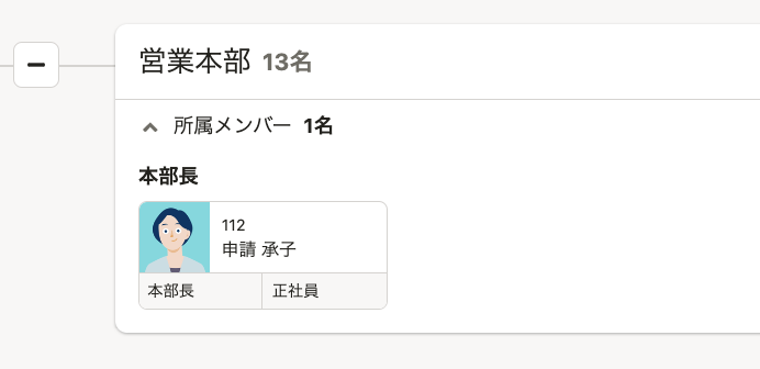 組織図・名簿上に表示される従業員情報を従業員カードと呼びます。詳しくは従業員カードとはを参照してください。