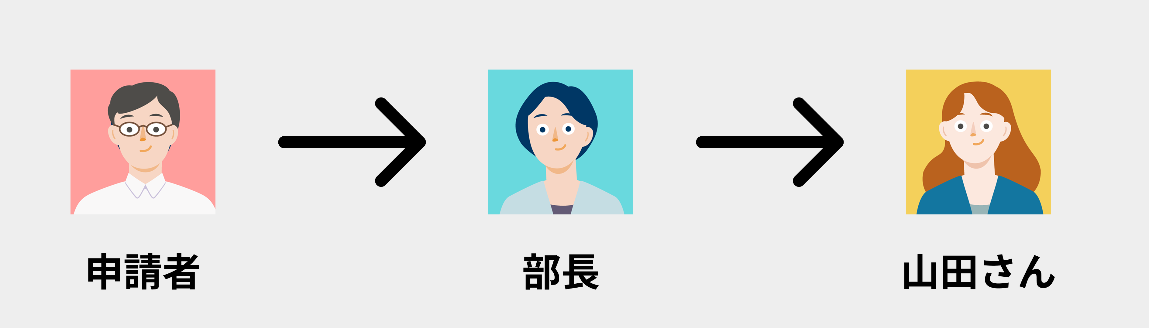 例:申請者と同じ部署の部長の次に、山田さんが承認する