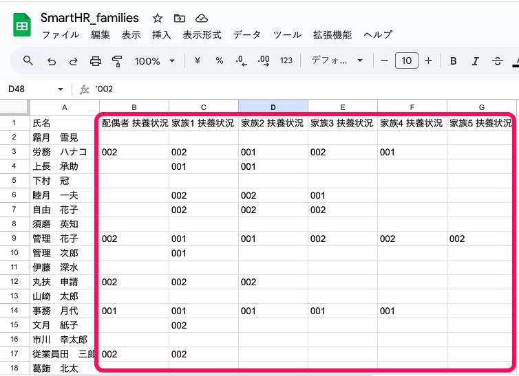 - [カスタムマスター名]:税法上の扶養状況変換用(任意の名前)