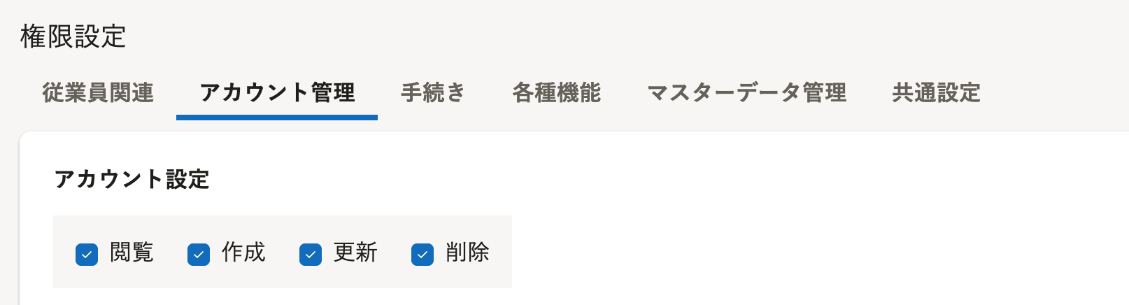 - アカウント設定の作成権限があり、[操作できる範囲]に対象の従業員が含まれるアカウント