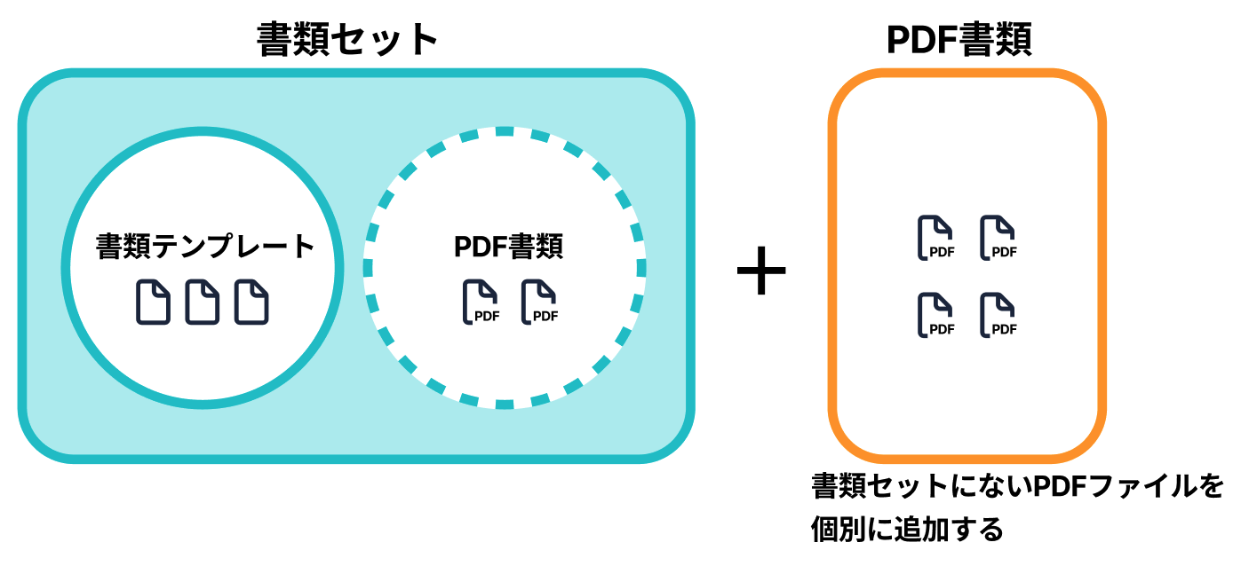 書類セットにないPDFファイルを個別に追加する場合: [PDF書類]にチェックを入れます。