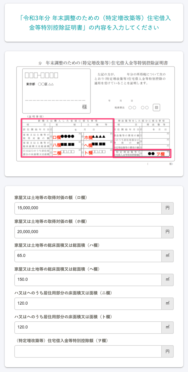 - 年末残高、住宅借入金等控除額は入力されません。今年の書類をもとに入力してください。