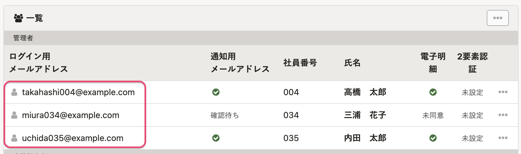 従業員のログイン用メールアドレスや通知用メールアドレスを確認する